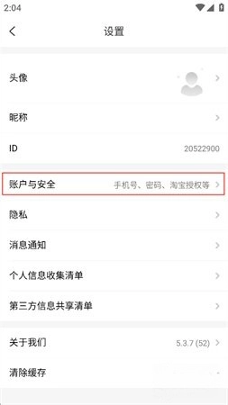 在设置页面中,找到并点击【账号与安全】选项。