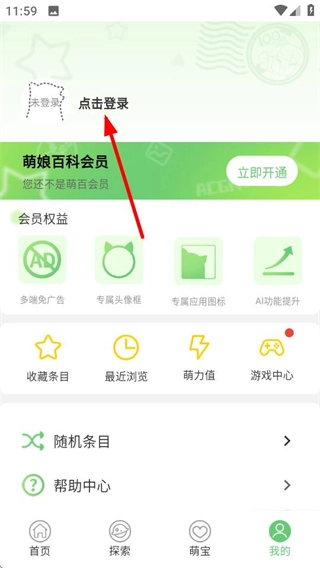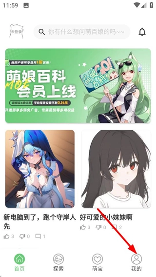 1、打开萌娘百科后,点击底部的“我的”选项,就能进入个人中心页面。