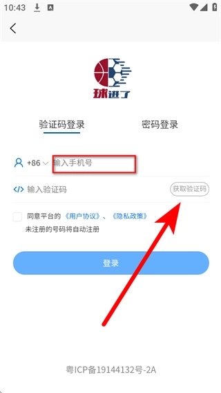 4、把收到的短信验证码输入到验证码栏,勾选相关协议后,点击登录按钮,即可完成账号登录操作。
