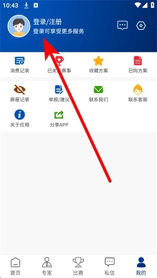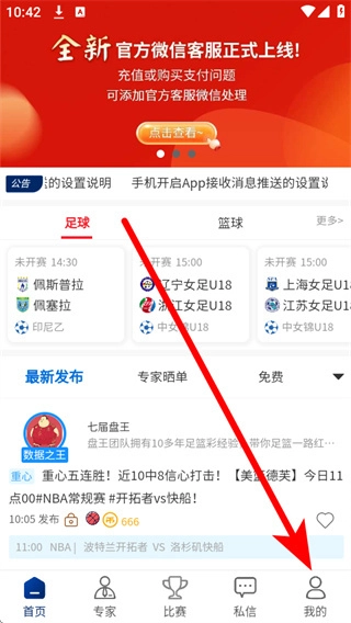 1、打开球进了应用后,点击底部导航栏中的“我的”选项,即可进入个人中心页面。