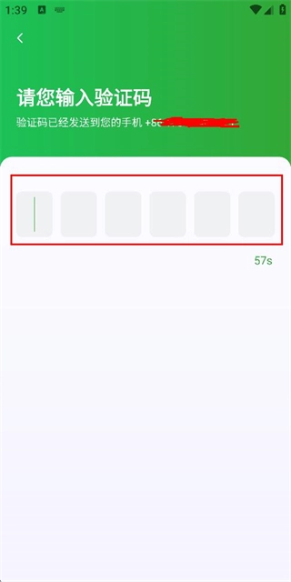 3、在输入短信验证码页面填写收到的验证码,完成账号的登录操作。