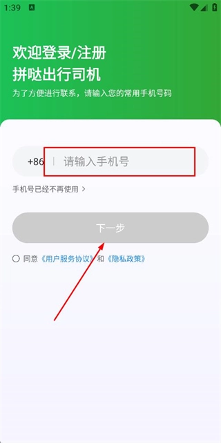 2、在登录页面填写手机号,勾选协议后,点击下一步获取验证码。