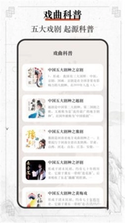 包含有关黄梅戏的科普内容,如起源、发展历程和艺术特点等,帮助用户更好地了解黄梅戏的文化内涵。