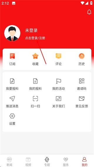 2、在个人中心页面,点击登录注册区域,即可进入短信验证码登录页面。