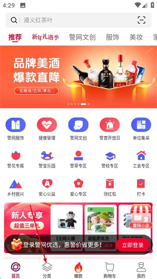 1、进入警网优选后,点击底部的分类选项,即可进入分类页面。