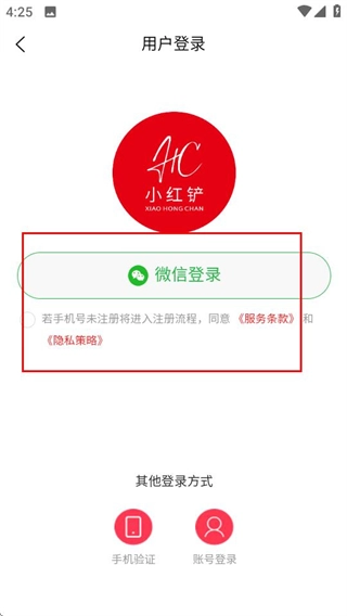 在登录页面,勾选相关协议后,点击微信登录选项,就能借助微信完成账号登录操作。