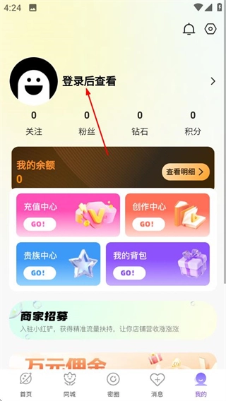 在个人中心页面,点击登录后查看区域,即可进入用户登录页面。