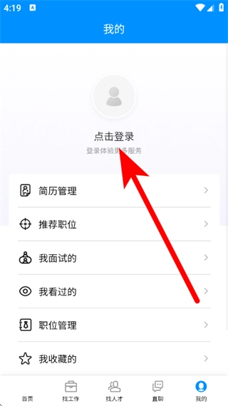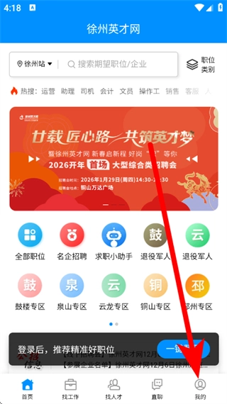 1、在徐州英才网页面,点击底部我的,进入个人页面。