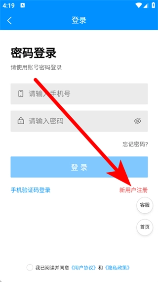 5、在新用户注册页面,输入手机号,点击获取验证码。