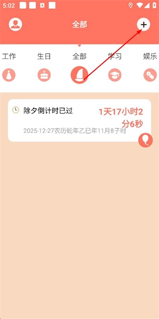 1、在计时应用首页点击右上角的加号按钮,弹出分类选择菜单。