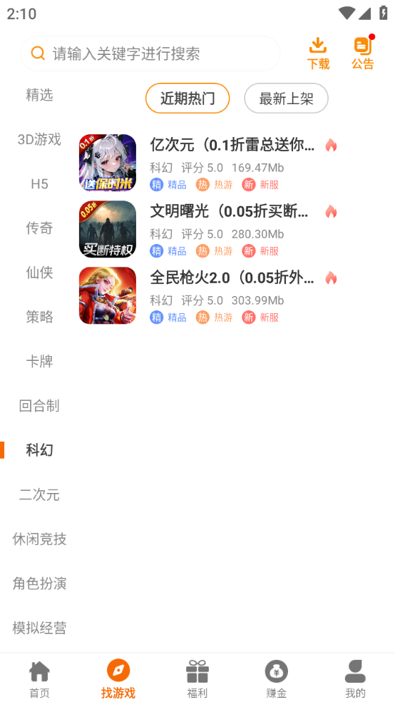 首页主要展示每日热门爆款游戏资源以及最新上线的游戏推荐。