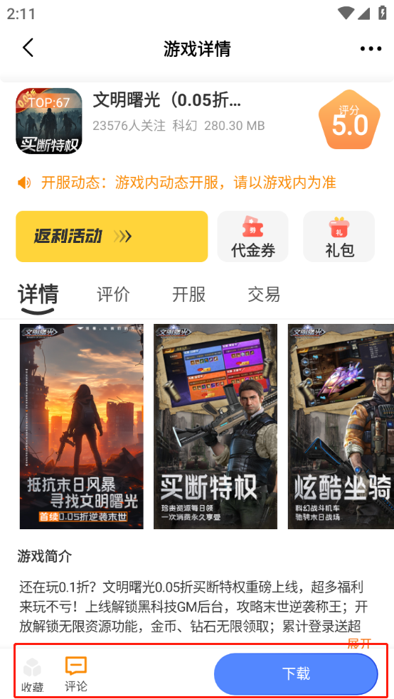 点击想玩的游戏,可以进行收藏、评论以及。