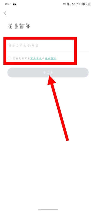 2、在注册账号页面,输入手机号,勾选相关协议后,点击下一步。