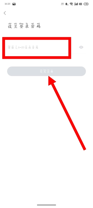 4、在设置登录密码页面,填写6-20位的登录密码,点击完成注册,完成注册。