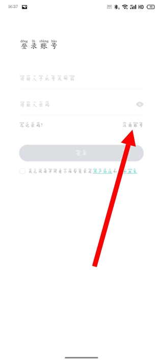 1、在小维智慧家庭登录账号页面,点击注册账号,进入注册账号页面。