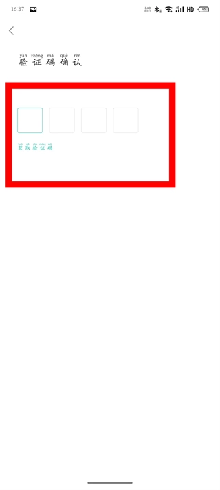 3、在验证码确认页面,将收到的验证码依次填入对应输入框,完成验证码验证。