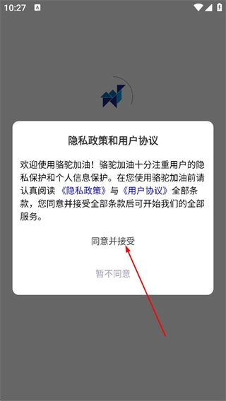 1、阅读隐私政策和用户协议后,点击弹窗中的同意并接受按钮。