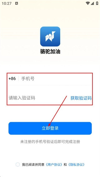 3、在登录页填写手机号,获取验证码后填写验证码,再点击立即登录。