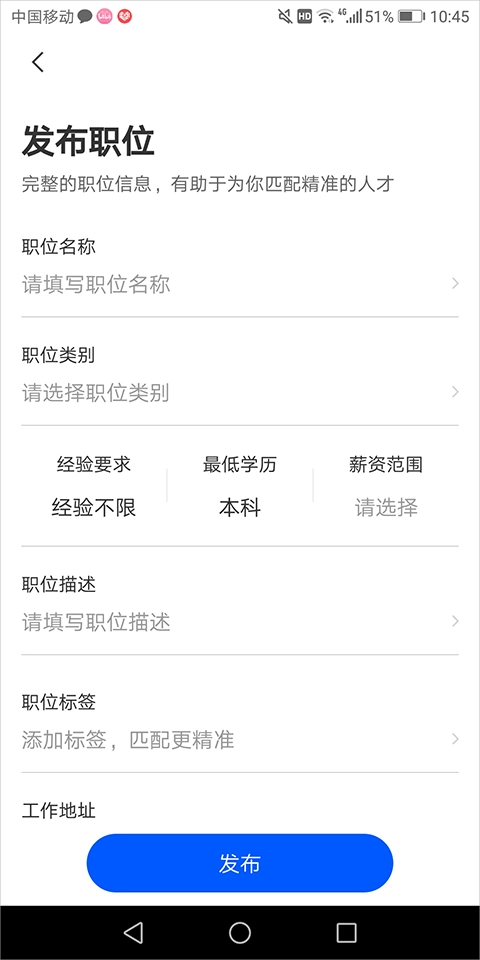 3、填写相关职位信息后,点击【发布】