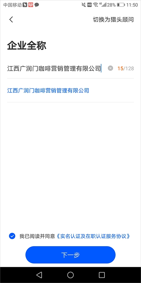 3、猎头企业可以点击公司名称,切换公司或者新增公司