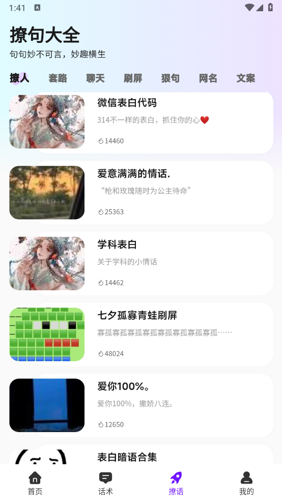 撩人输入法是一款汇聚了丰富恋爱话术的实用软件,涵盖了开场破冰、邀约技巧、深情表白等多种场景话术。有了它,恋人间的交流告别单调乏味,能轻松又迅速地传递爱意,一键就能发送让人心动的消息,为彼此打造充满趣味的聊天氛围,避免尴尬冷场的情况出现。