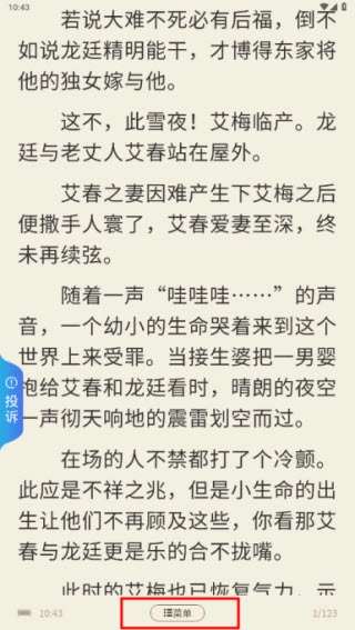 打开你想看的小说,点击阅读界面下方的“菜单”按钮,就像下图展示的这样。