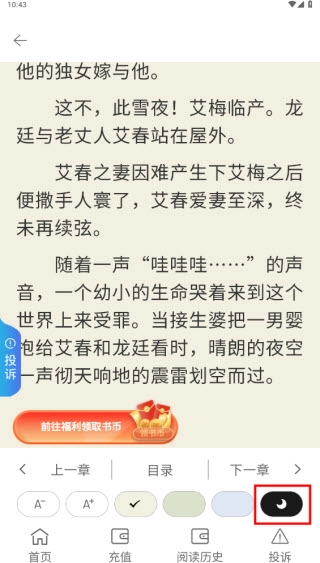 开启夜间模式,在晚上看小说再也不怕伤眼啦。