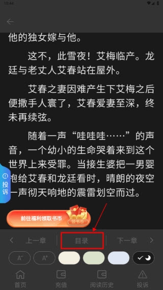 点击“目录”按钮能够快速跳转至目录页面,在这个页面里你可以迅速定位到自己想要查看的章节内容。