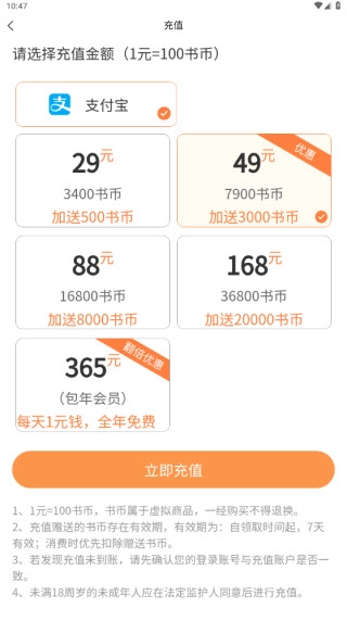 1元可兑换100书币,书币为虚拟商品,购买后概不退换。