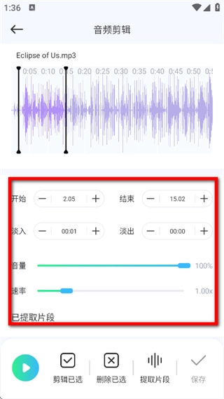 4、在确认剪辑效果无误后,点击底部的保存按钮,即可完成音频剪辑的操作流程。