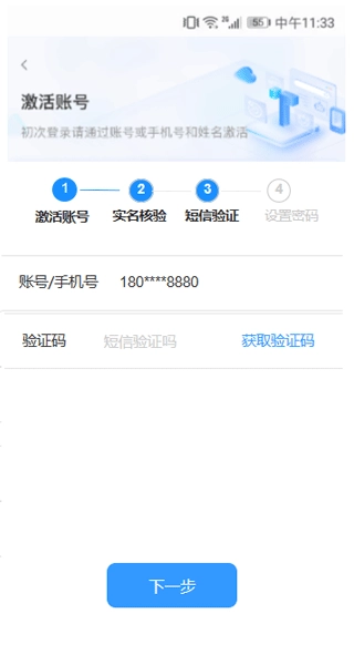 输入账号/手机号和姓名验证账号是否激活,已激活,直接进入登录页,未激活点击下一步