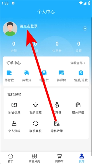2、进入个人中心页面后,点击“请点击登录”按钮,即可跳转至登录页面。