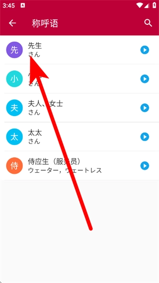 4、在称呼语列表,点击选择先生,进入词汇的详情页面。