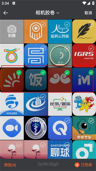 3、在相机胶卷界面,选择需要拼接的图片,进行下一步操作。
