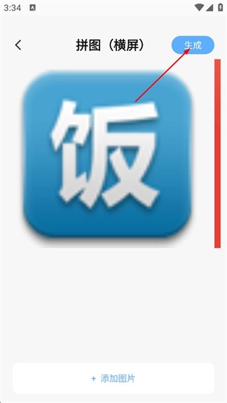 4、在拼图页面,点击右上角的生成按钮,生成拼接后的图片。