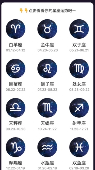 3、天文百科知识大全,用户可学习海量天文航天知识;同时提供十二星座每日、每周、每月运势解析,满足用户运势查询需求。