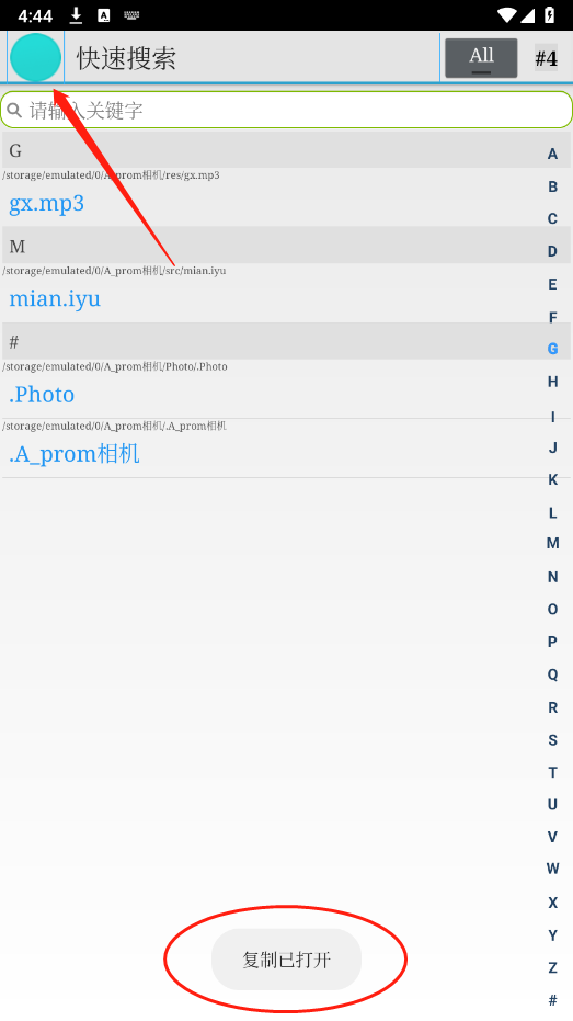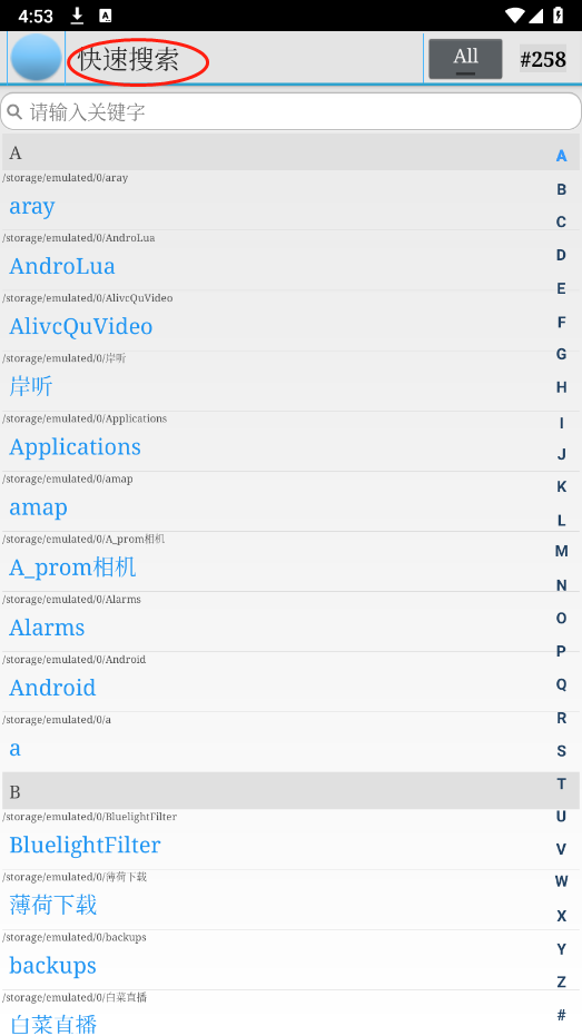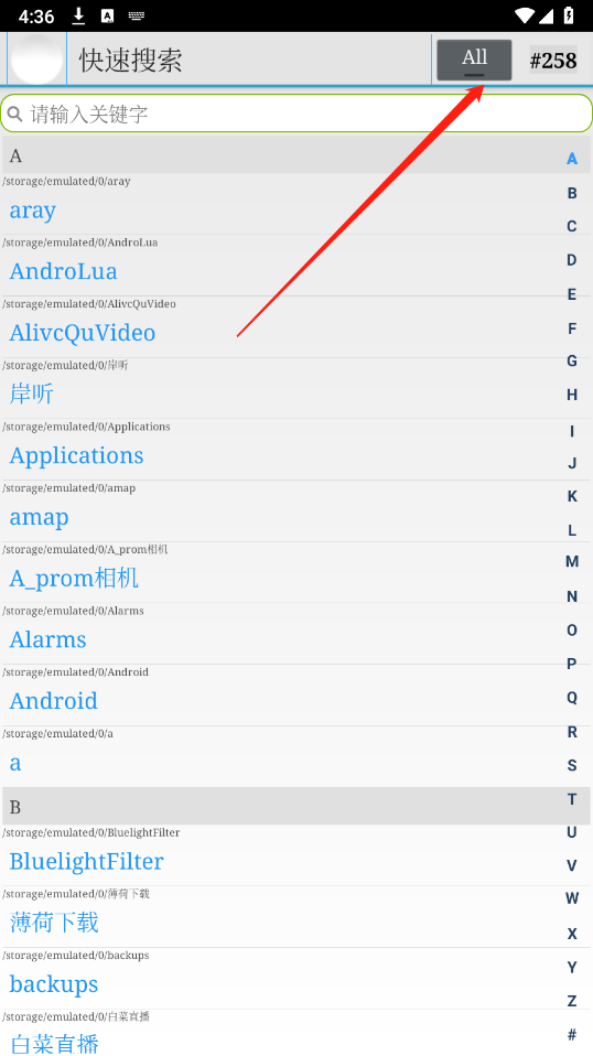 右侧的A-Z按钮支持一键跳转,文件的排列顺序是按照字母顺序来的。