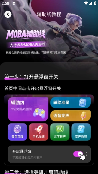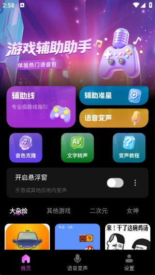 1、在首页提供辅助线、辅助准量、语音变声、音色克隆、文字转声、变声教程的功能;