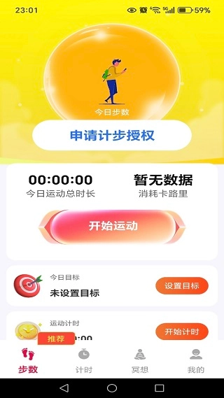 1、安装进入步数页面查看,同步展示今日走路步数,还有目标设置功能。