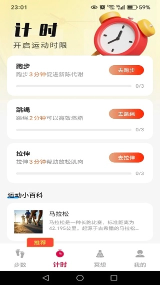 2、在计时页面,可以手动开启计时功能,了解每个运动时间是否达标。