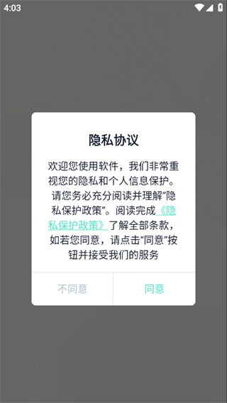 1、首次打开软件,阅读并同意隐私保护政策后即可继续使用。