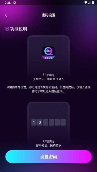 1、能把手机里不想被别人看到的照片和视频导入进来,进行专属加密处理后隐藏起来,只有输入正确密码才能找到这些文件。