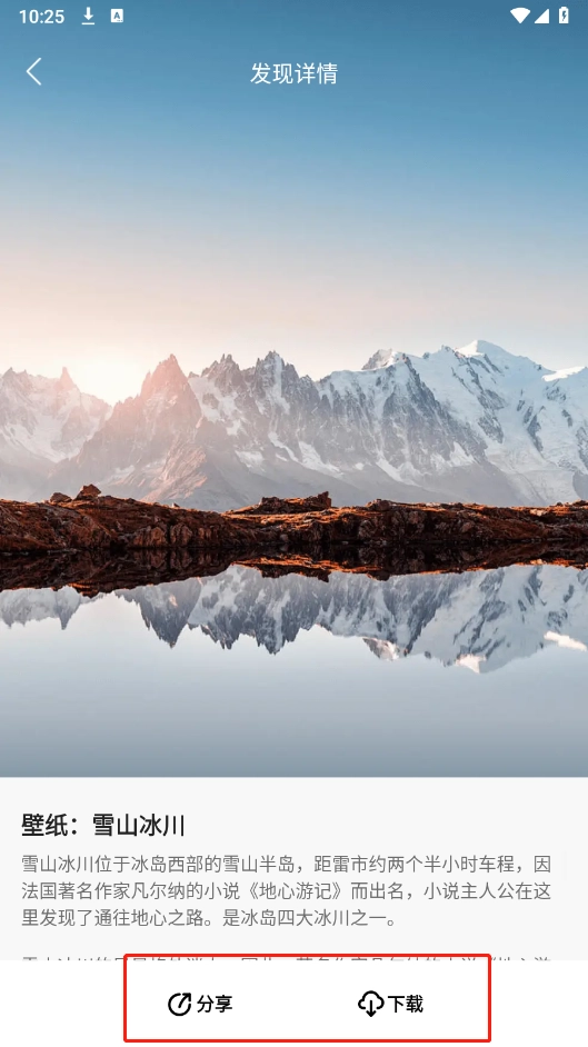 打开软件后,首页会展示热门壁纸推荐,每一款壁纸都标注了拍摄地点、名称和详细介绍。