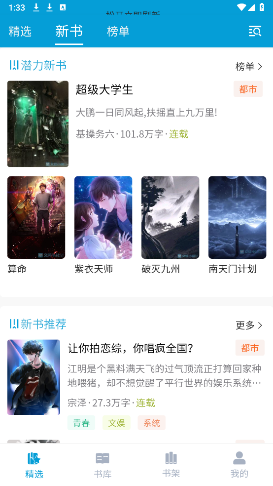 在“精选”和“书库”这两个栏目里,有着海量的热门小说资源,涵盖了都市、玄幻、科幻等多种类型。