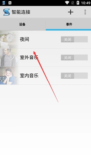 2.点开事件设置夜间、室外音乐、室内音乐等