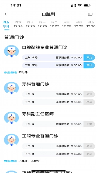 3.选好科室、专业、日期及时间再点击预约即可完成操作便捷的预约流程。