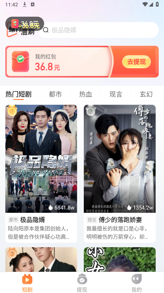 绿竹漫刷平台提供能领红包的短剧资源,涵盖仙侠、都市、古装等各类题材,所有短剧均免费观看,全程打扰,观看过程中还能获取相应红包奖励,实现看剧领红包两不误,让短剧观看体验更舒心自在。
