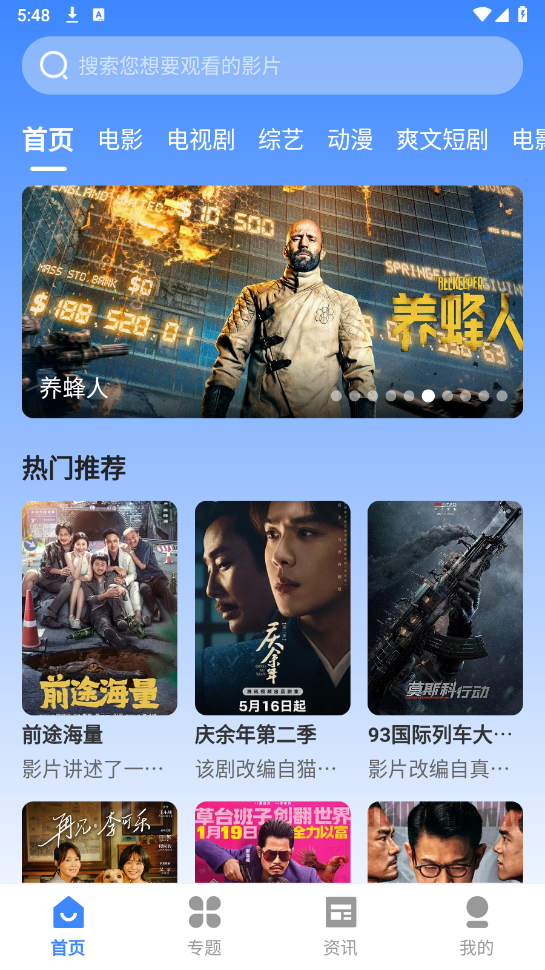 山雨影视是专注于追剧的平台,汇聚了当前最新最热的影视内容,涵盖动漫、综艺和电视剧等类别。平台上所有影片资源均为免费,且无任何广告打扰,用户可直接点击播放。此外,资源更新十分及时,能让大家第一时间享受到追剧的快乐。