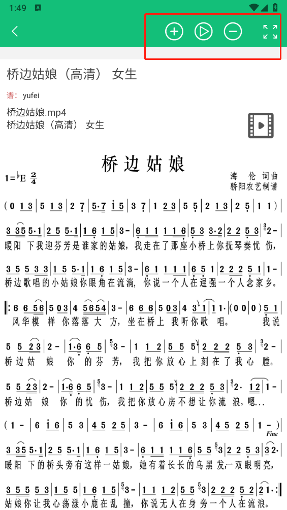 你可以这样操作:找到你需要的简谱资源并点击它,然后点击页面右上角的“播放”按钮就能使用了,另外还能根据自己的需求调整播放速度。