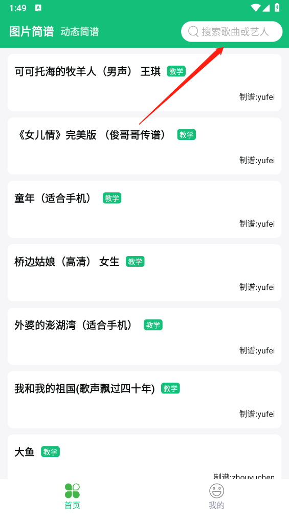 选好之后,就能借助关键词搜索或者在线查找自己喜欢的音乐简谱了。